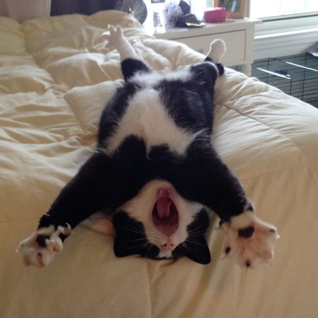 Such desires are also typical of our smaller brothers, although they do not perform daily labor feats. Due to physiology, our furry friends are not capable of full-fledged stretches, but they can do cooler things - fall to the ground and spin around their axis on their backs. It's good for your health and looks amazing. Just right for a funny photo collection.