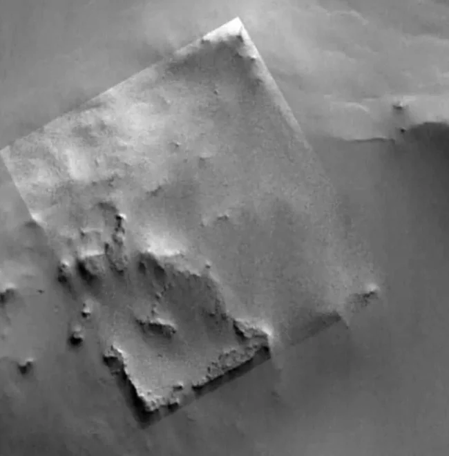 The Mars Orbiter took a picture of an unusual square structure on the red planet. This object has clear lines, right angles and a symmetrical shape - which is generally not typical for nature.