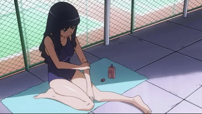 Girl in anime RUBS HERSELF WITH SUNSCREEN CREAM