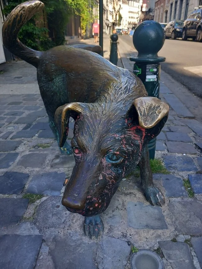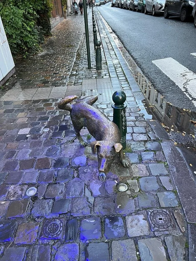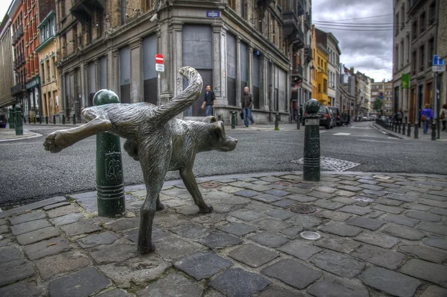 Less well known is that he not only has a female counterpart, but also an animal one - a dog known as Zinneke Pis, who is forever raising her paw to a Brussels street pole. The dog was installed on the corner of Chartreux and Vieille Marché in 1998.