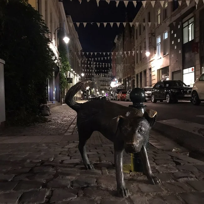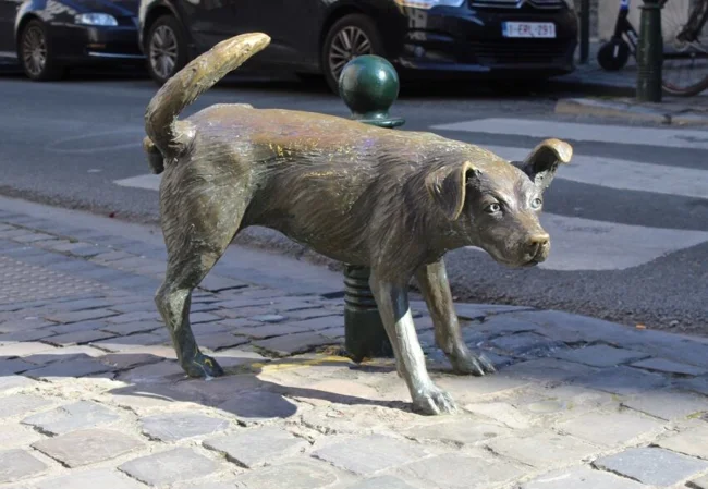 This bronze pet is called the peeing dog or the peeing boy by the city dwellers.