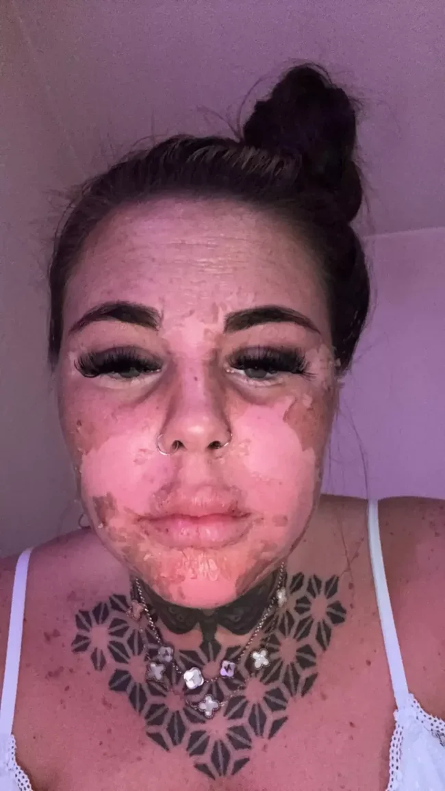 Deciding to get a better tan, the girl received a severe burn on her face (3 photos)