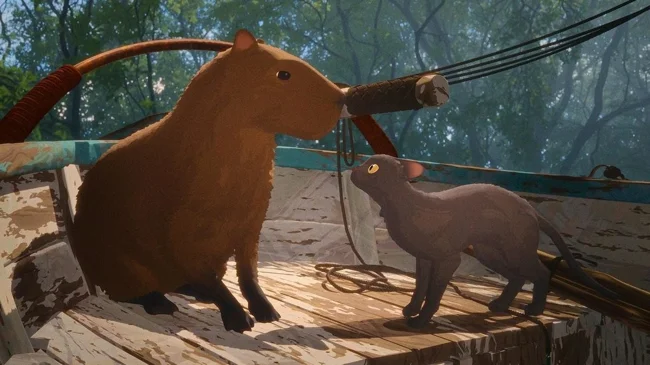 Why does the capybara in the cartoon "Flow" speak with the voice of a camel (3 photos + 1 video)
