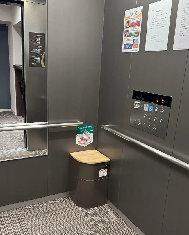 27. An elevator with a toilet