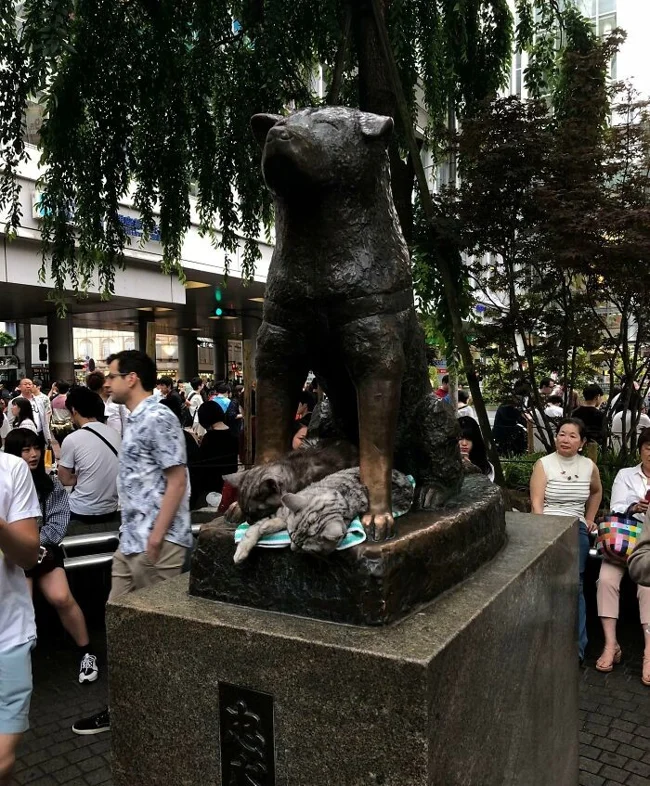 4. Cats sleeping under the Hachiko statue at the station Shibuya
