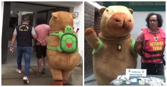 In Peru, a policeman in a capybara costume arrested a drug dealer (2 photos + 1 video)