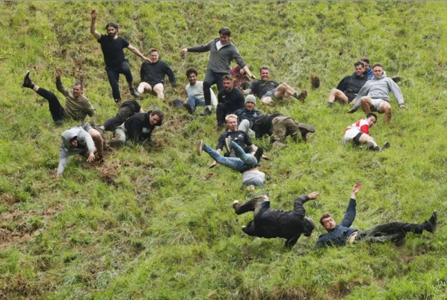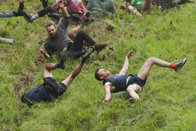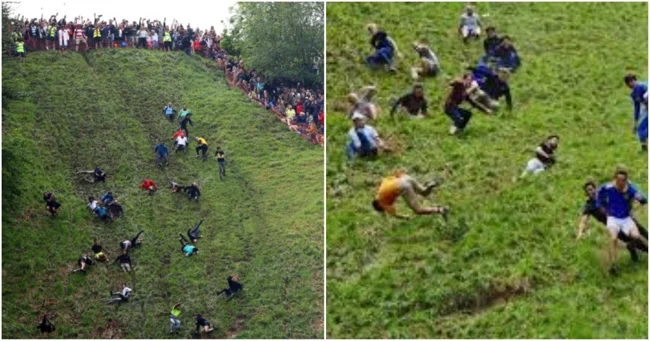The competition is insanely old and incredibly fun. Cheese can reach high speeds of up to 70 miles per hour (112 km/h), but a person cannot go down a hill on foot at such speeds. So the cheese and the Englishmen race headlong, literally. Every year, dozens of people suffer various fractures at the competition and are treated for several months.