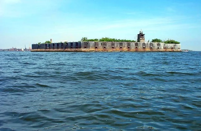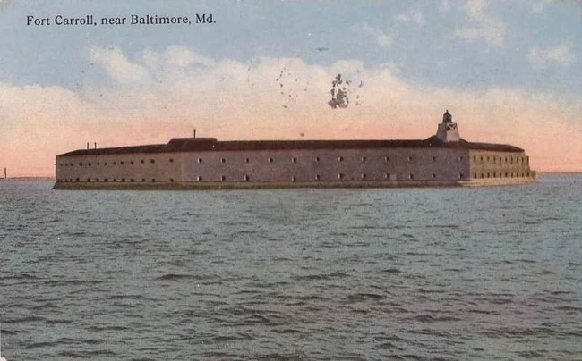 Fort Carroll was built in the late 1840s to protect the city of Baltimore from naval attack. But like many forts of the time, it never lived up to its potential. The artificial island's base was designed as a concrete hexagon surrounding a central courtyard with large gun mounts facing the most attackable corner.
