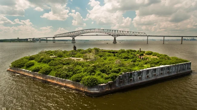 A heavily fortified hexagon firmly planted in the Patapsco River near the Key Bridge is Fort Carroll, an abandoned Civil War fort built by Robert E. Lee. Today, it is so overgrown that it serves as an informal bird sanctuary.