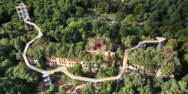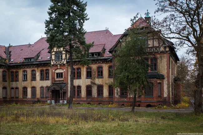 Once one of Germany's largest sanatoriums, with over 60 buildings, it is now a ghost town of both size and disrepair. Fallen trees block the roads leading to the site, where crumbling balconies and overgrown tunnel shafts seem to recall the past of this convalescent home that housed patients such as Adolf Hitler and Erich Honecker.