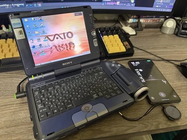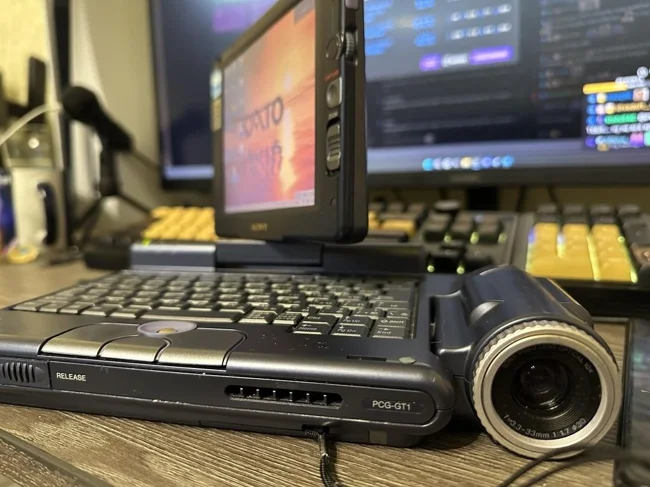10. Sony VAIO PCG-GT1, a unique laptop with a built-in video camera. It was released in 2000 exclusively in Japan. Only 500 units were produced, so this model is highly prized by retro-technical collectors