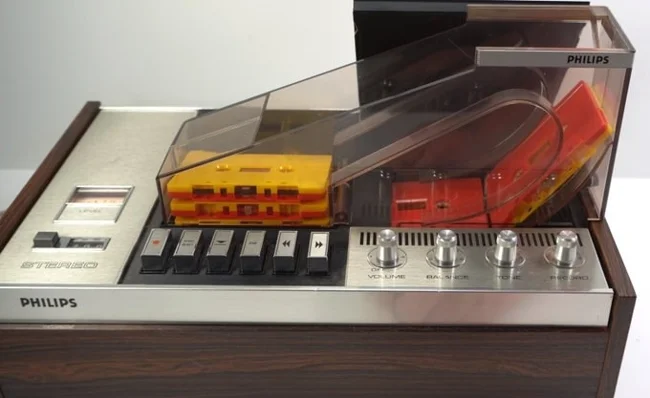 The player was battery-powered. It could be connected to two pairs of headphones or stereo speakers.