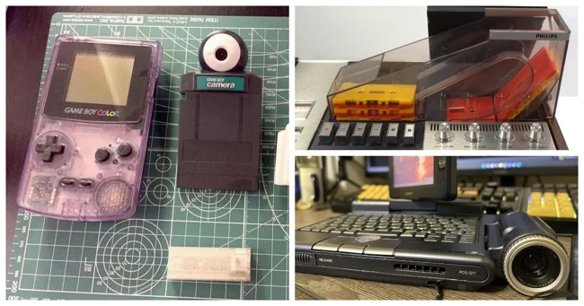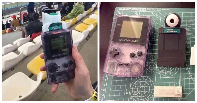 The camera for the Game Boy portable console was sold from 1998 to 2002. The camera took low-resolution photos in grayscale. Photos could be shared between consoles, edited, and used in games as avatars. The camera rotated 180°, so you could use it to take selfies. Photos could be printed on thermal paper on a special printer for the Game Boy.