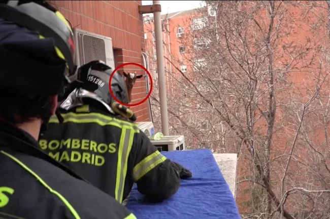 A surprising incident occurred in Madrid: a goat somehow climbed onto the ledge of the fifth floor. To save it, firefighters used rather risky methods.