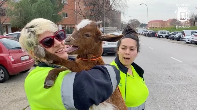 Eventually, a firefighter snuck up and grabbed the goat. The animal was handed over to the Madrid Veterinary Emergency Service, and a new home is already being sought for it.