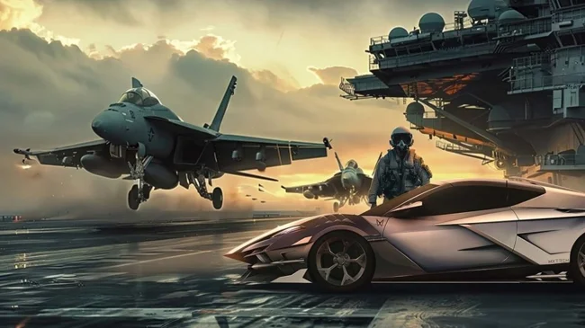 The aviation theme is continued in the interior design. The standard steering wheel has been replaced with a control column, red toggle switches have appeared, and an aircraft joystick, whose purpose is not disclosed, is installed on the central tunnel.
