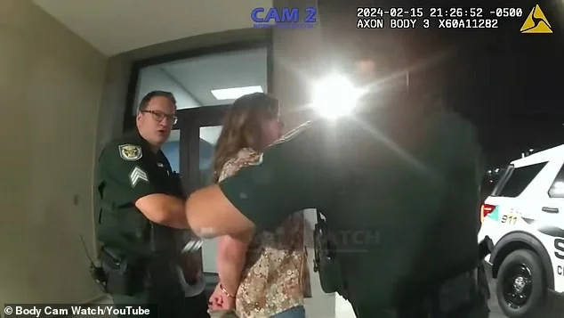 On the way to jail, the woman repeatedly asked what she had done wrong, and was told, "You're being violent and drunk."
