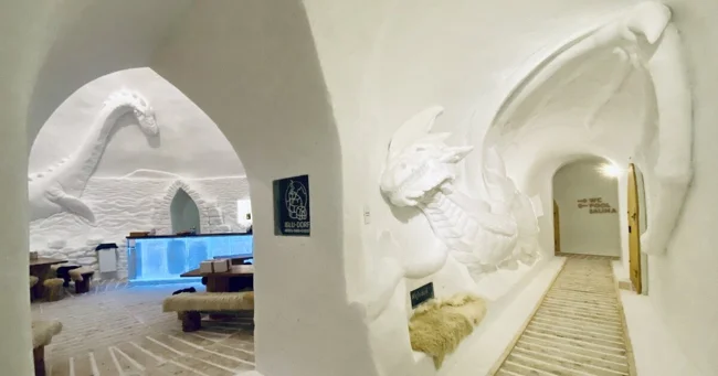 Guests, whether single travelers or families, can choose to stay in a “classic” igloo, located away from the main complex, or splurge on a suite, which includes a private toilet and Jacuzzi, as well as trays of champagne and aperitifs. Regardless of the choice, each person is served tea in bed in the morning, i.e. in their sleeping bag.