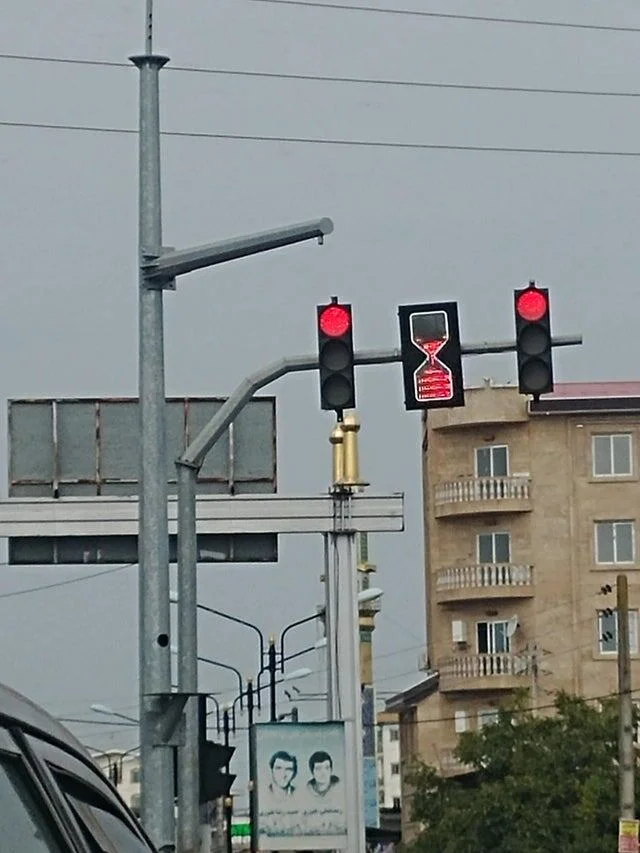 19. The timer on the traffic light is made in the shape of an hourglass ![]()