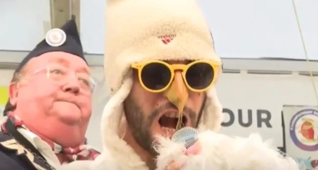 The new seagull cry imitation champion in 2025 was 24-year-old Michel Pollamuette. He was dressed in a curly blond wig, yellow boots and a fur coat with pins. His performance was highly praised by the jury. By the way, the jury included a famous figure of the carnival, Keith Moche.