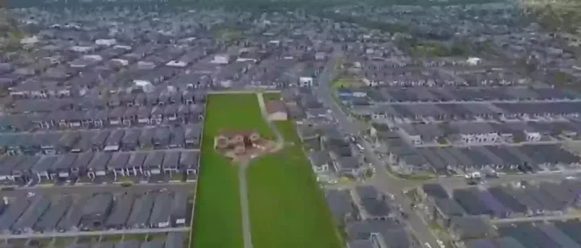 The 20,000 square foot lot is home to a luxurious mansion with a Windsor Castle-style driveway, green lawns, more than five bedrooms, a basketball court, and a large garage. However, the most interesting thing is that their territory is literally surrounded by modern development, consisting of many similar houses.