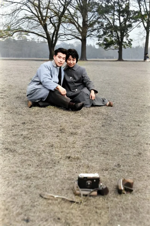 A Japanese couple taking a photo, 1959.