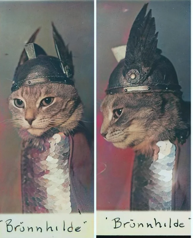 A cat in the form of the Valkyrie Brunhilde. Photo from 1936.