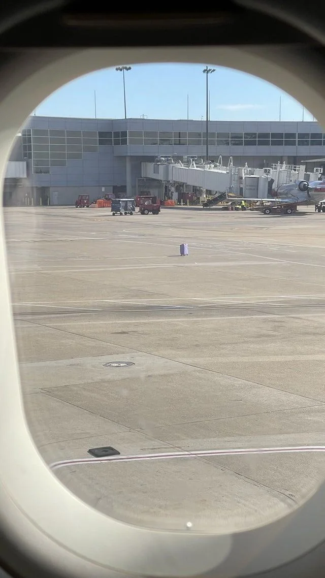 One of the baggage handlers threw a suitcase so hard that a piece of the plastic casing and a wheel broke off