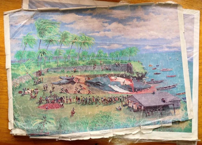 The captured animal is hauled ashore to be butchered. Because this process requires a controlled environment, it is not carried out on the island itself. Since the early days of whaling on Bequia (which began shortly after the abolition of slavery), a whale processing station was located on the nearby small island of Petit Nevis.