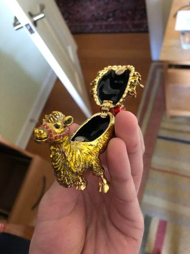 Accidentally dropped an old camel and found out that it opens, which I didn't know guessed
