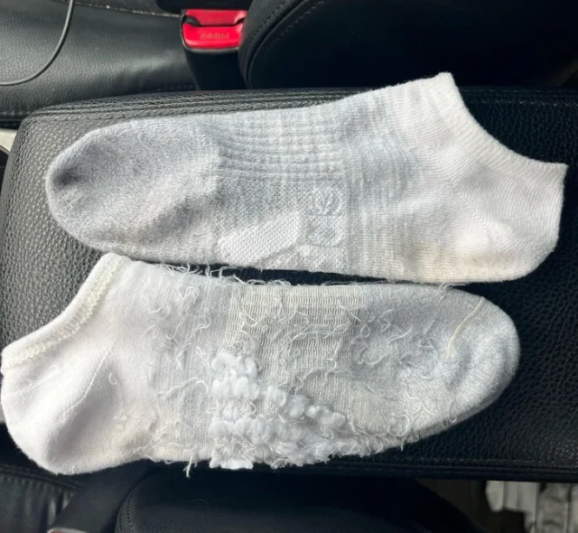 "The socks have the logo on the sole, which makes them hard to walk in impossible"