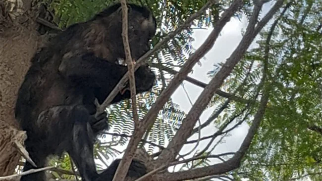 The animal was sitting in a tree and the service workers calmly took it down. When they examined the monkey, they found out that it was domestic, because they noticed traces of ropes or chains on its body, which were probably used to tie the animal up.