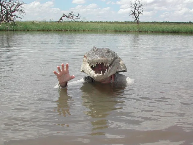 A bold experiment: a zoologist became a crocodile and climbed into their lair (7 photos)