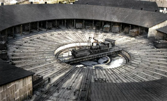 A roundhouse turntable is a special technical device that was historically used to maneuver steam locomotives and other railway equipment inside a roundhouse. It was a round or sector-shaped platform mounted on an axle, which made it easy to turn locomotives in the desired direction.
