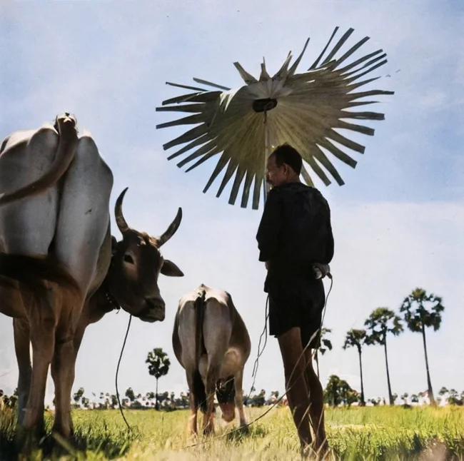A farmer with cows in Cambodia, 1952.