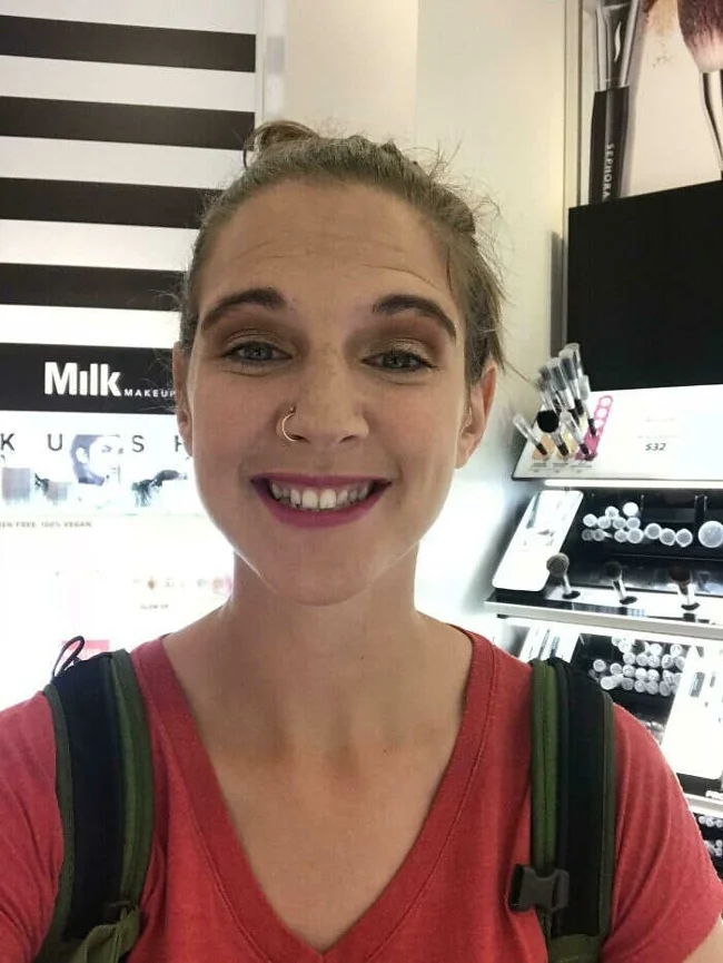 8. “Professional” Halloween makeup. I asked for the photo on the left, adding some fake blood. On the right is what the makeup artist did to me