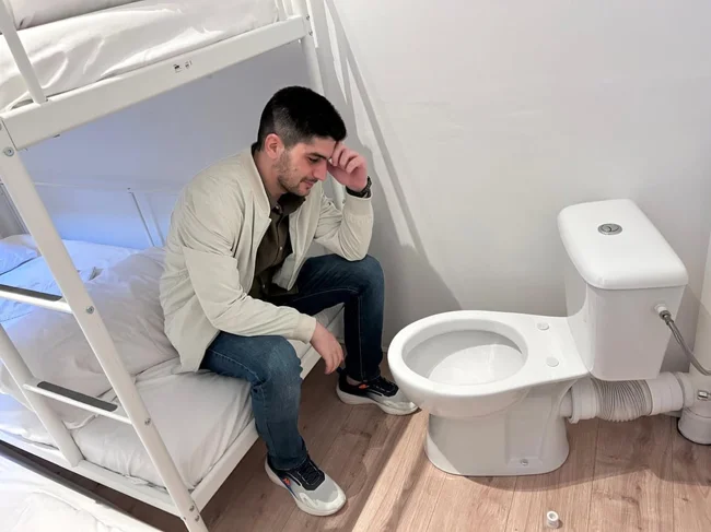 This is a toilet in Paris, by the way. There are plenty of craftsmen everywhere.
