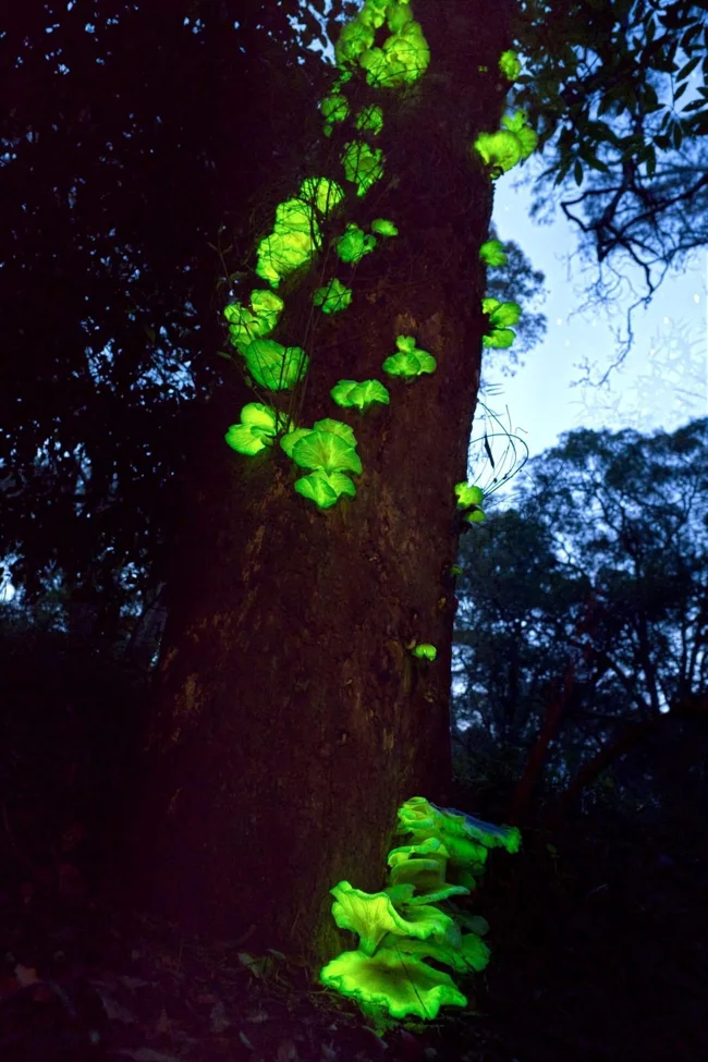 The mountain contains large amounts of pure sulfur, which emits icy purple colors when it burns.