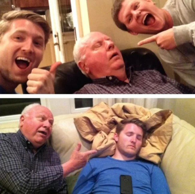 As they say, before you joke about a sleeping person, think several times. This is what happened to the grandson and his grandfather