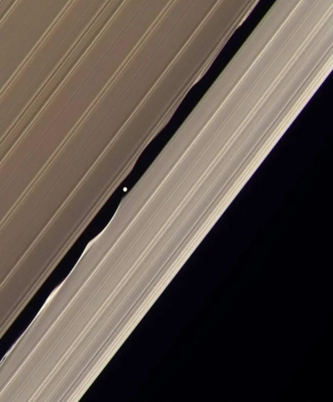 2. NASA's Cassini spacecraft captured a moon of Saturn creating waves in its rings