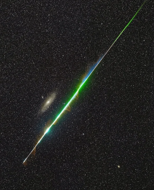 4. A stunning shot of a burning meteor flying against the backdrop of the Andromeda Galaxy