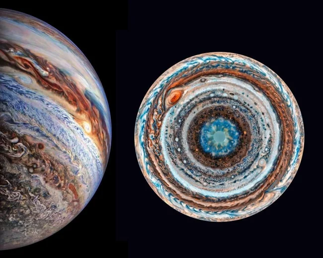 11. Image of Jupiter from NASA's Juno (left) and Cassini (right) spacecraft