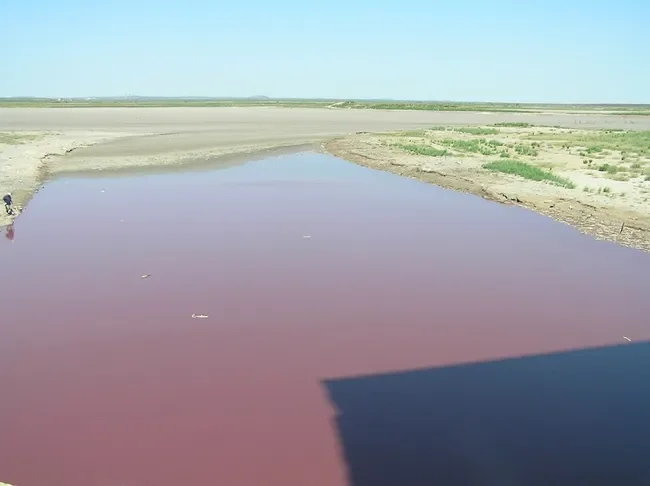 The O.K. Fisher Reservoir in Texas attracts attention with its unusual feature - at times the water here acquires a deep red hue, reminiscent of blood.