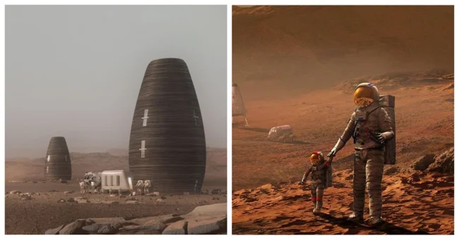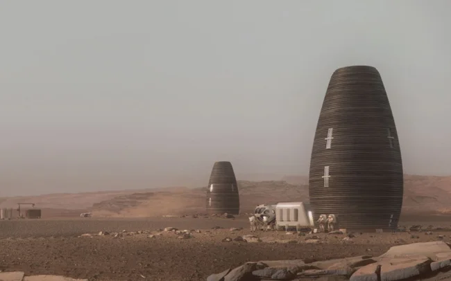 They will be printed on a 3D printer from Martian materials. According to the creators, this will allow the construction of buildings without being tied to cargo deliveries from Earth. Such a house has several floors, it can accommodate 4 people.