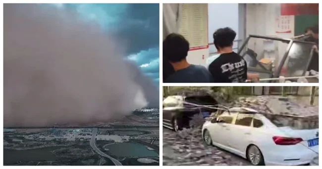 A powerful storm hits Northern China: underweight residents are advised to stay home (1 photo + 7 videos)