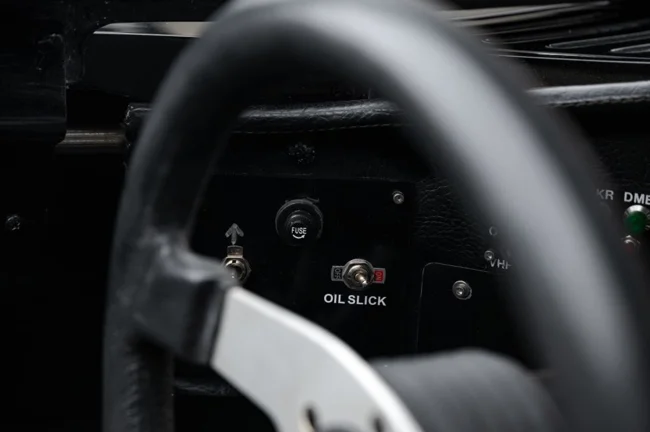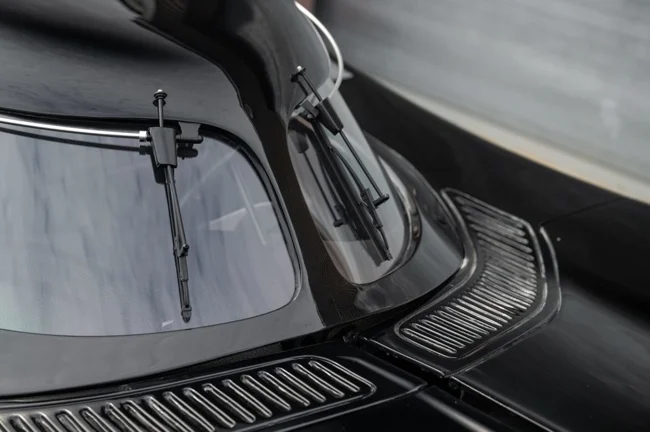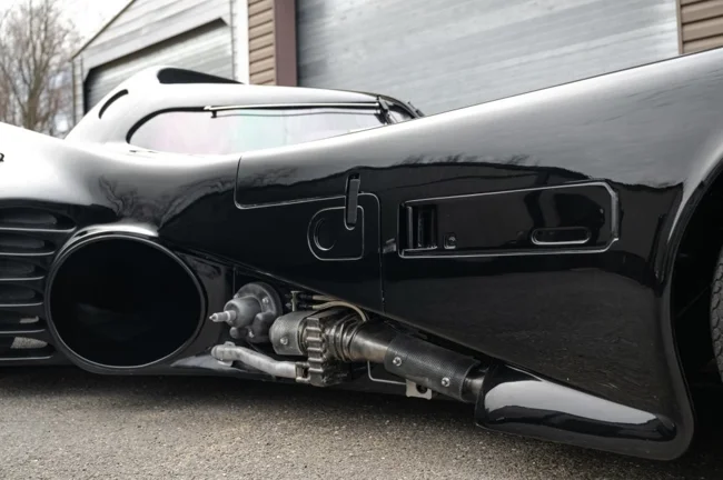 The Batmobile's body is made of fiberglass, and the fittings are made from parts of a real fighter jet. In particular, the jet engine nozzle at the stern, like a number of other components, are borrowed from the British Harrier. And they can even be called partially functional. Given the stunt focus of the replica, flamethrowers are mounted inside the nozzle to simulate afterburners.