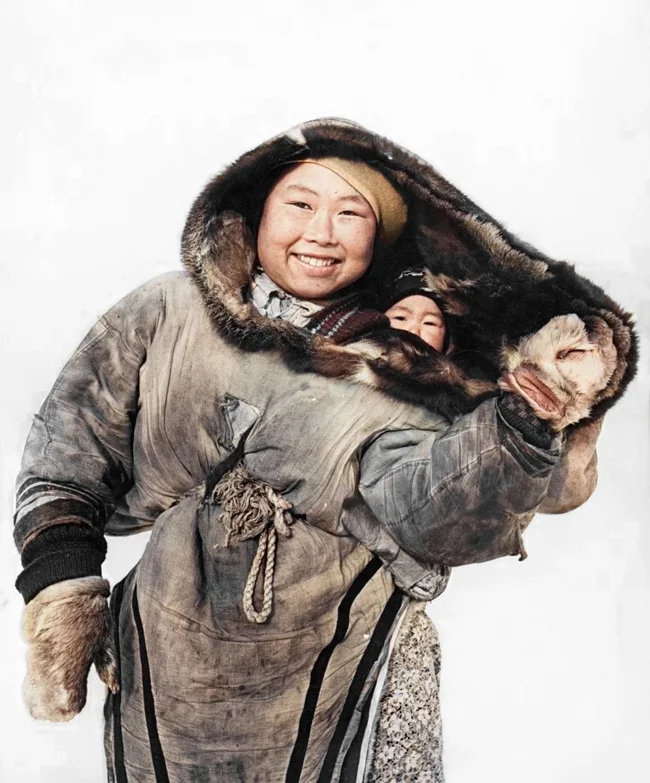 Portrait of an Inuit woman with her child. Alaska, USA, 1947.