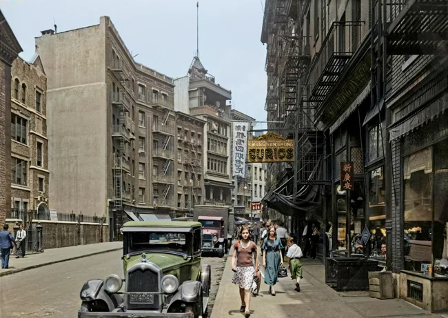 A view of a street in Chinatown. New York, USA, 1930s.