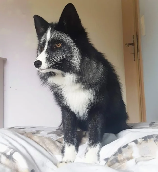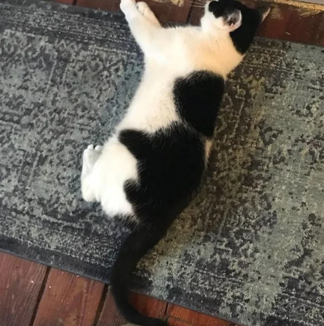 It looks like a black kitten is climbing on a white cat - that's how beautiful it is