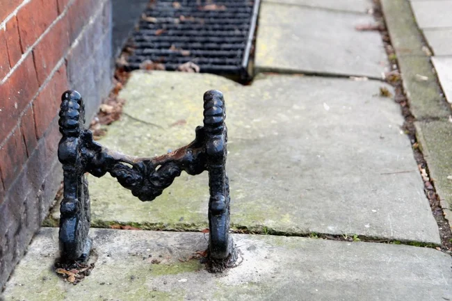 A shoe scraper at the entrance to a house in the West End of Edinburgh, Scotland